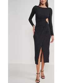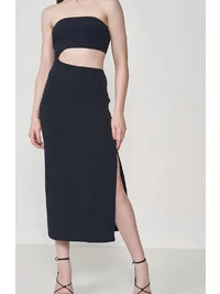 This elegant sleeveless dress is designed for special occasions and formal events. The sophisticated silhouette features a backless design that creates a stunning visual impact, making it an ideal choice for weddings, baptisms, and upscale celebrations.